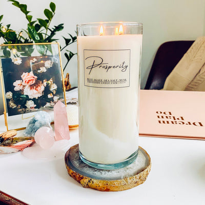 The Prosperity candle was created with the intention of encouragement to manifest good health, family, love and good fortune.