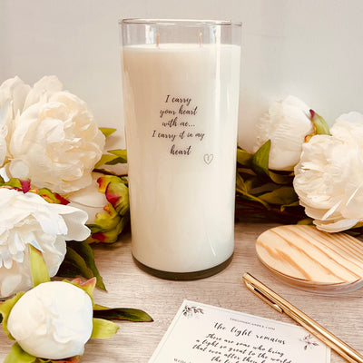 For a time when you want to offer a little more than just words of comfort. The label reads "I carry your heart with me, I carry it in my heart".