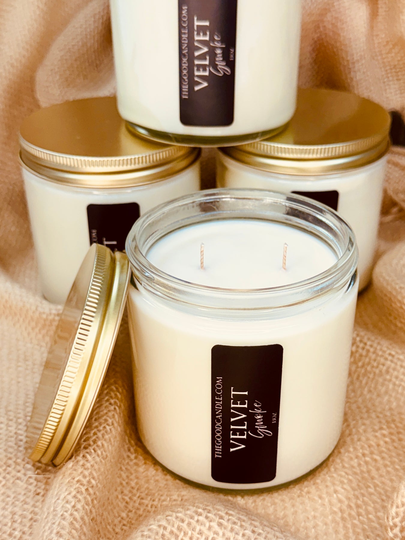 13oz soy wax hand poured into a glass jar with lid. Burn time estimated 65hrs, please remember to trim your wicks for a long lasting burning candle.
